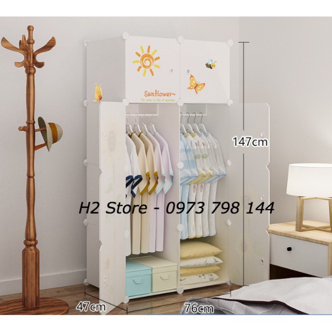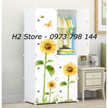 TỦ NHỰA GHÉP 8 Ô TRẮNG ĐỤC CỬA HOA HƯỚNG DƯƠNG TREO ĐỒ ĐA NĂNG THÔNG MINH sâu 47cm