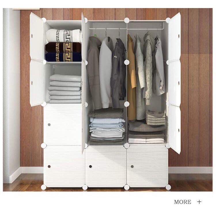 Tủ nhựa ghép đa năng 12 ô sâu 47,cửa vân gỗ, 2 treo - bảo hành 1 năm