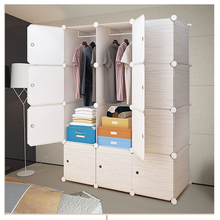 Giới thiệu Tủ nhựa ghép đa năng 12 ô sâu 47,cửa vân gỗ, 2 treo - bảo hành 1 năm