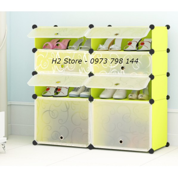 TỦ NHỰA GHÉP ĐỂ GIÀY DÉP ĐA NĂNG 2 Ô TO + 6 Ô NHỎ MÀU VÀNG CHANH CỬA TRẮNG TRONG SIZE 47CM