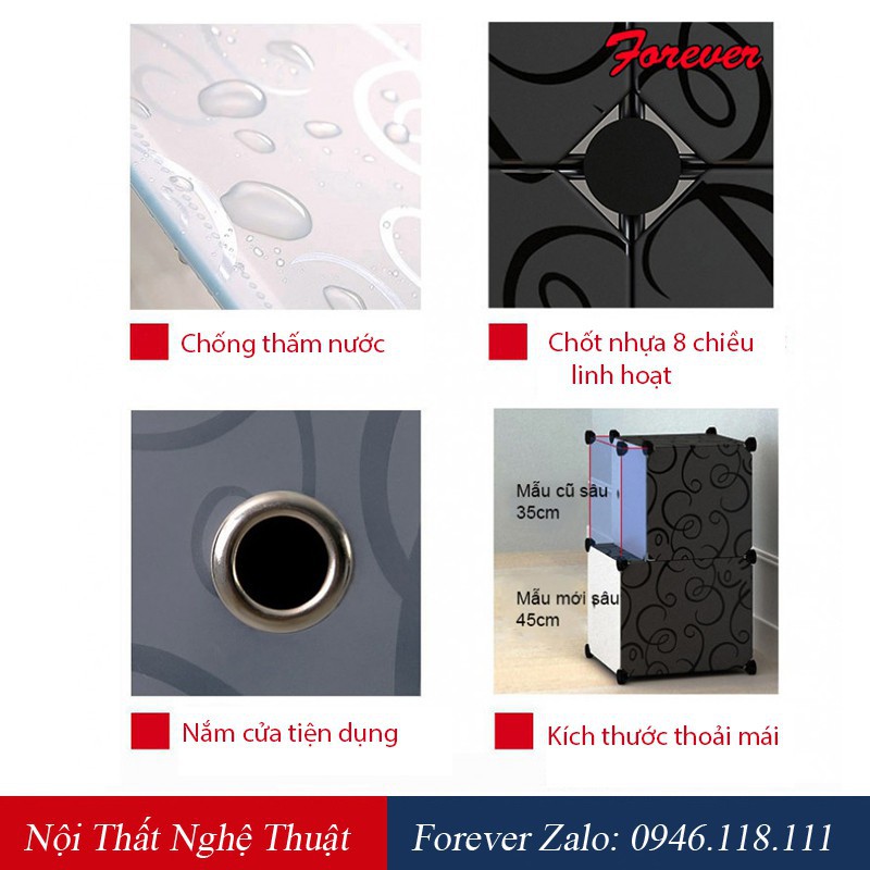 Tủ nhựa ghép giá rẻ 30 ô(5 ô giày) màu đen, cửa trắng decal quần áo, 4 treo,1 hàng xéo size to sâu 47-BH 1 năm 1 đổi 1