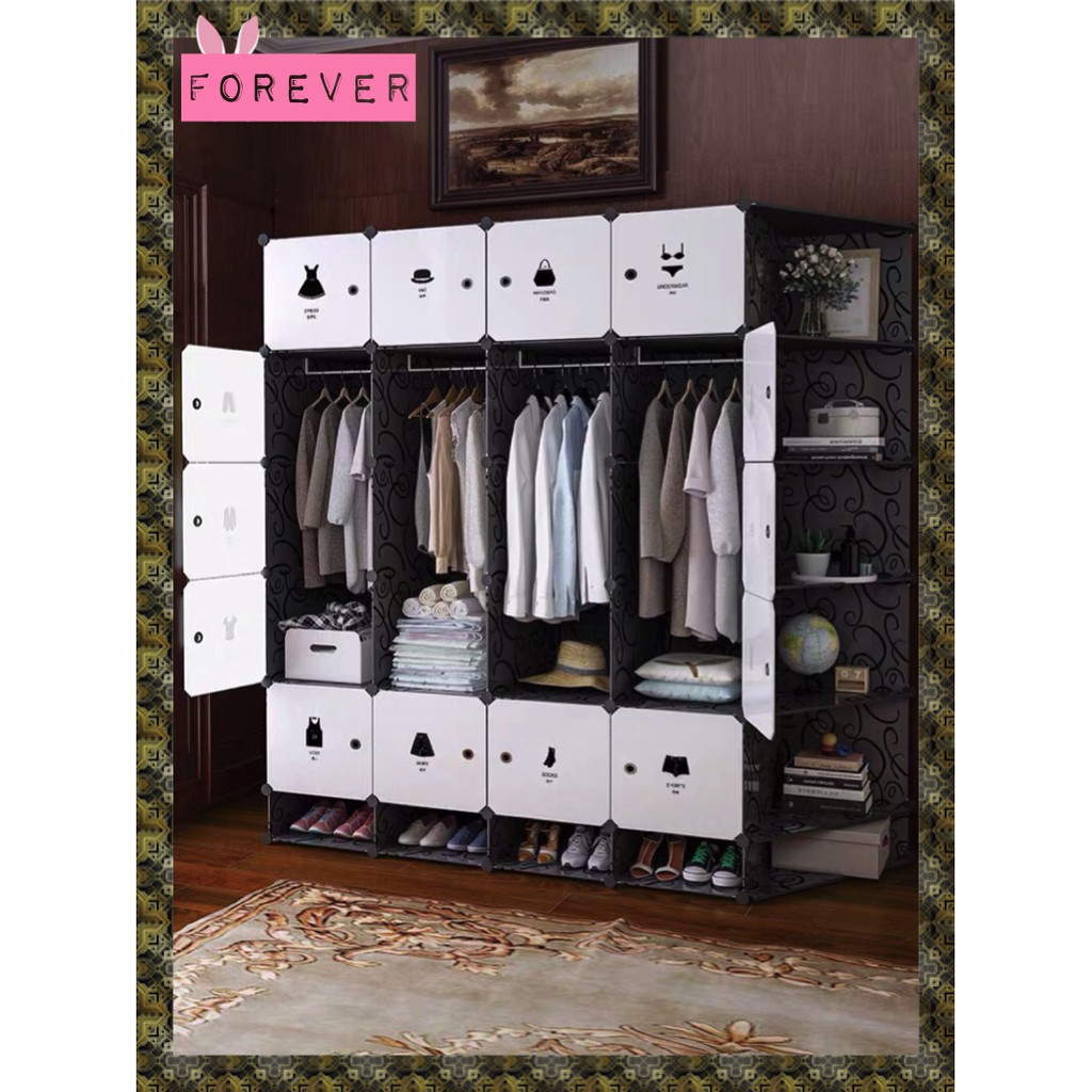 Nhà cửa & Đời sống > Nội thất > Tủ bếp || Tủ nhựa ghép giá rẻ 30 ô(5 ô giày) màu đen, cửa trắng decal quần áo, 4 treo,1 hàng xéo size to sâu 47-BH 1 năm 1 đổi 1Còn hàng