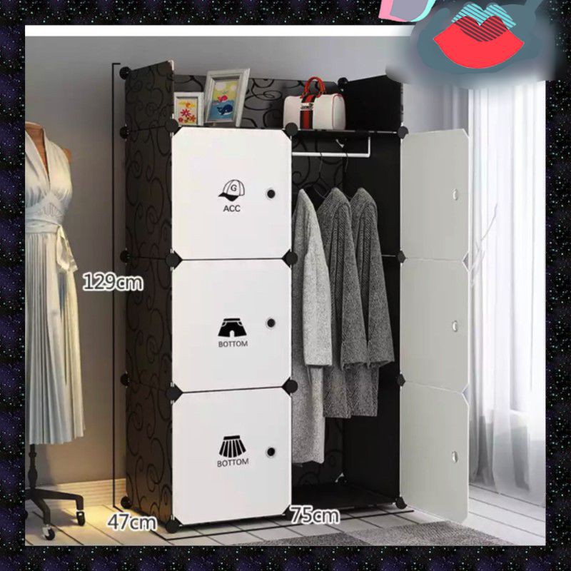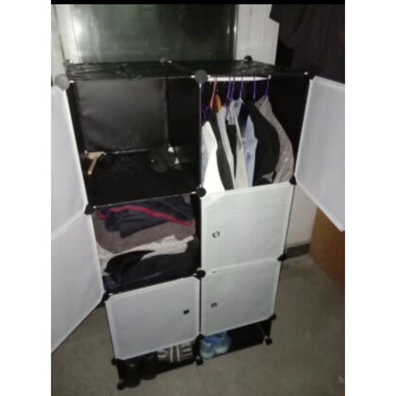 Tủ nhựa ghép giá rẻ 6 ô và 1 ô để đồ nhỏ ở trên màu đen, cửa trắng
