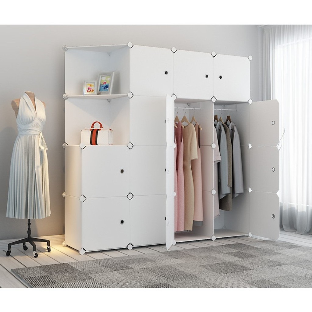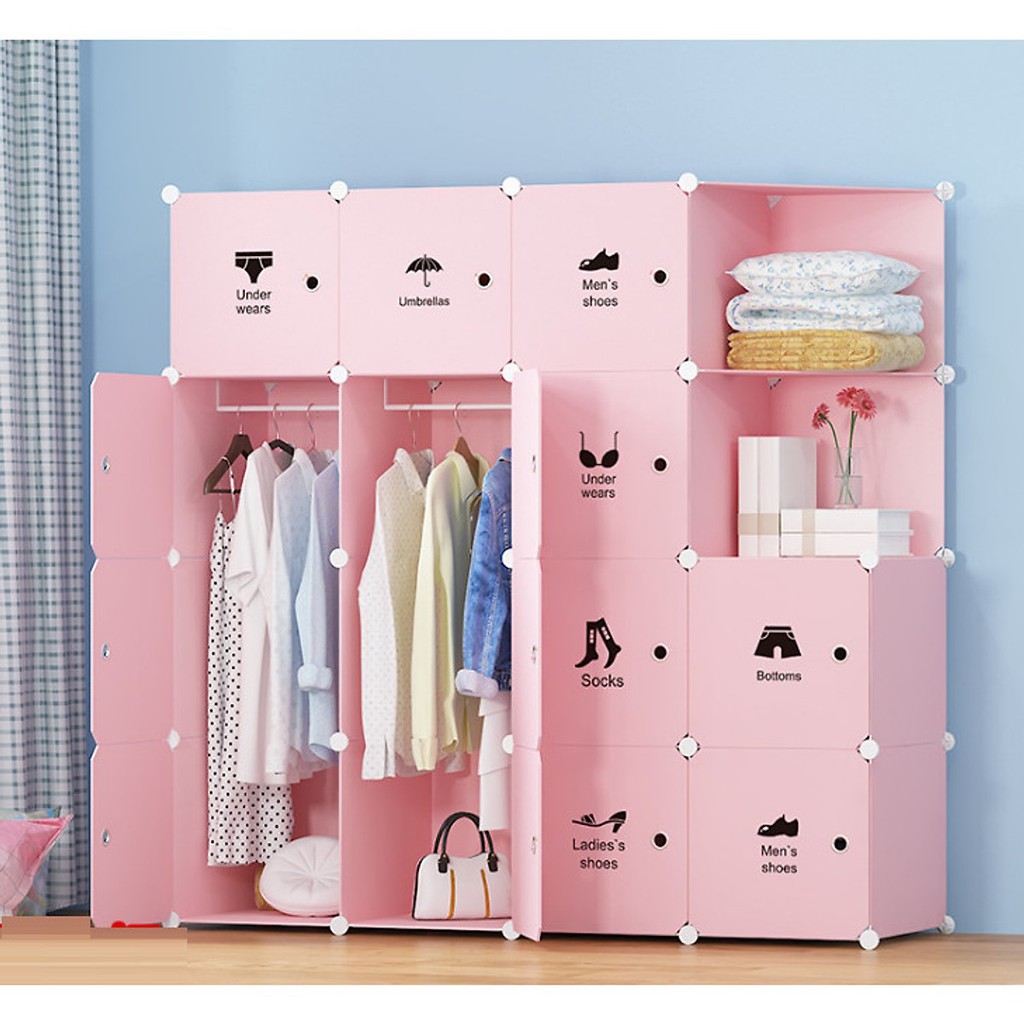 Tủ gồm 14 ngăn tủ lớn, vừa có thể gấp đồ, vừa có thể treo đồ, và 2 ngăn tủ xéo hởTặng 2 thanh treo đi kèm tủ, không dùng treo vẫn đủ vách tủ