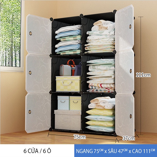 Giới thiệu TỦ NHỰA GHÉP THÔNG MINH 6 Ô- XANH CỬA QUẦN ÁO ( bảo hành 1 năm )