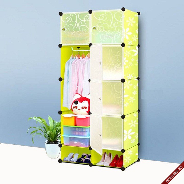 Tủ nhựa ghép-Tủ đựng quần áo 8 ô 2 ô giày