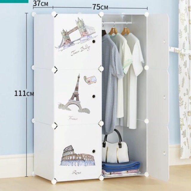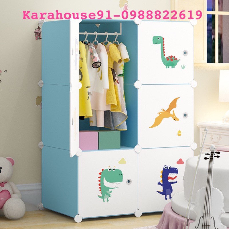 Tủ nhựa ghép - tủ đựng treo quần áo - 6 ô sâu 37x37cm cho bé yêu. Kèm 1 treo đồ.