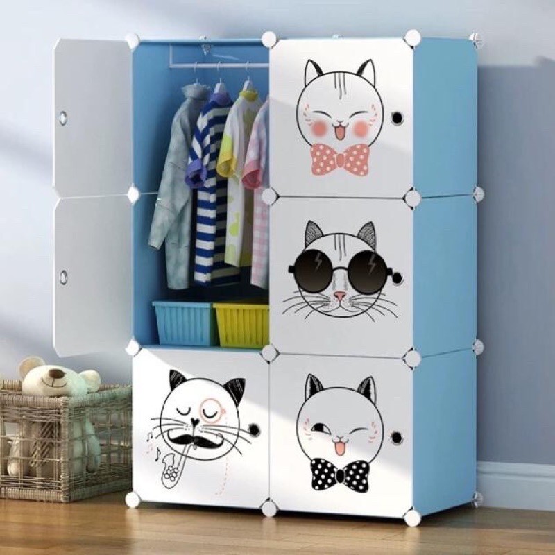 Tủ nhựa ghép - tủ đựng treo quần áo - 6 ô sâu 37x37cm cho bé yêu. Kèm 1 treo đồ.
