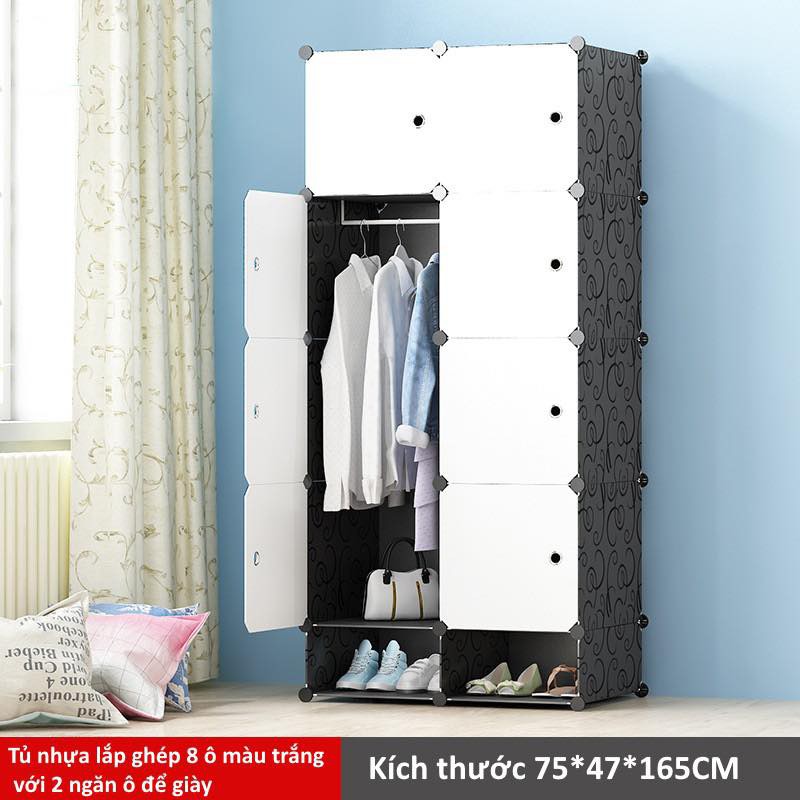 Tủ nhựa ghép - tủ quần áo - tủ nhựa - 8 ô và 2 ô giày