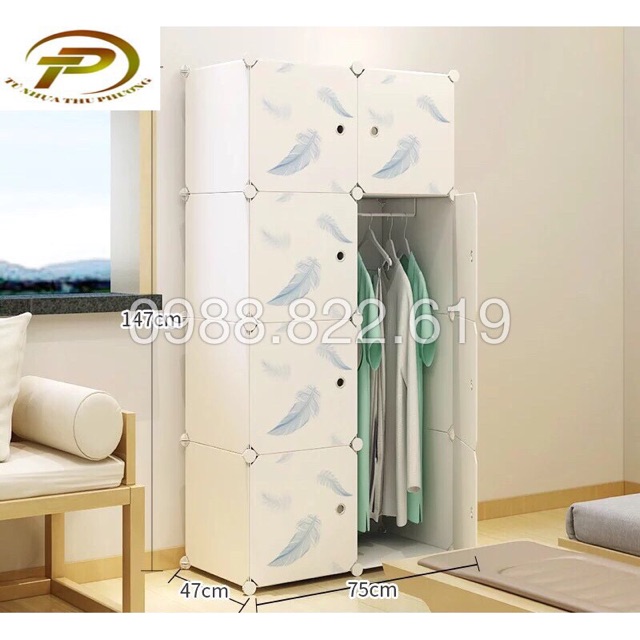 Tủ nhựa ghép- tủ quần áo - tủ nhựa 8 ô . Tặng móc sườn và treo đồ.