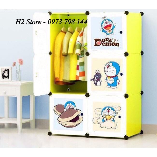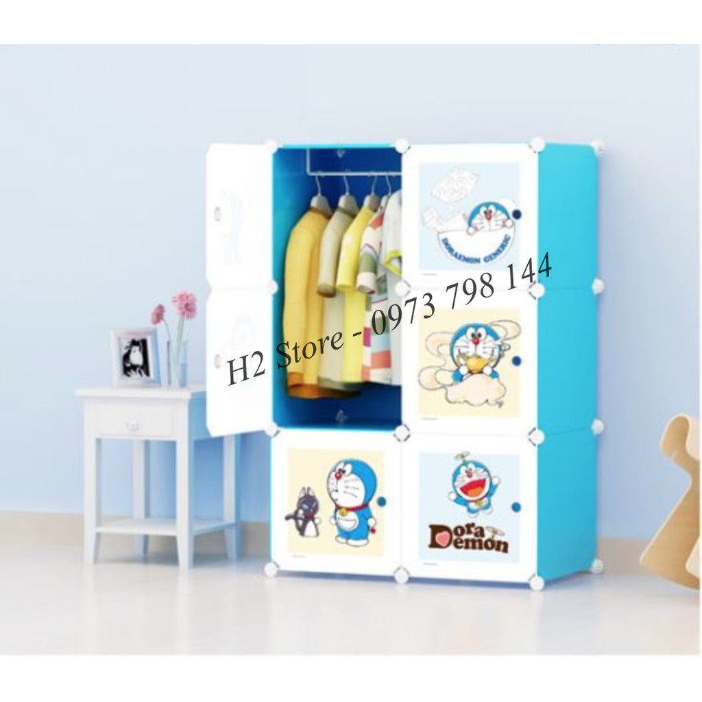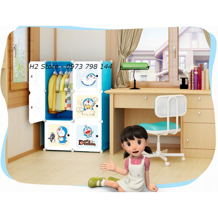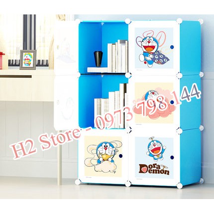 TỦ NHỰA GIÁ RẺ LẮP GHÉP ĐA NĂNG 6 Ô CỬA ĐÔRÊMON NHỎ ĐỂ ĐỒ THÔNG MINH CHO TRẺ sâu 47cm