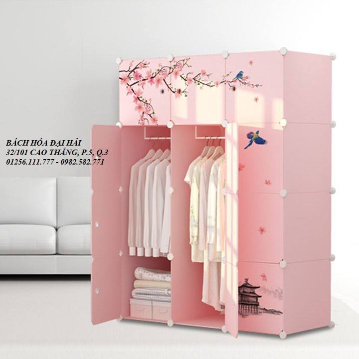 iêu phẩm TỦ GHÉP ĐA NĂNG - TỦ HOA ANH ĐÀOTủ nhựa ghép 12 ô loại to Size 47 cm (đủ đồ, tặng kèm thanh treo)