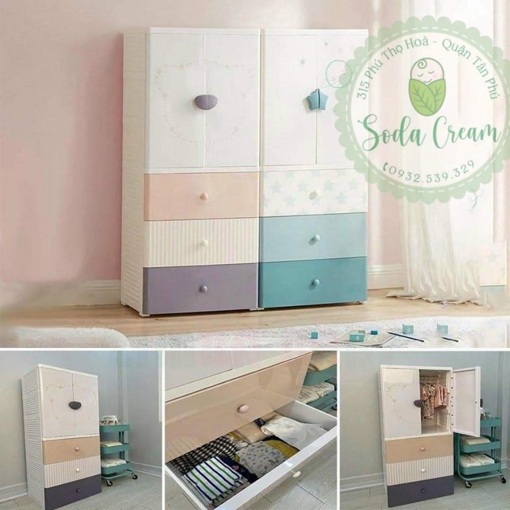 ☘ Tích hợp bánh xe dể dàng chuyển vị trí của tủ , các cạnh tủ bo tròn nhựa nhẵn mịn không gây trầy xước .