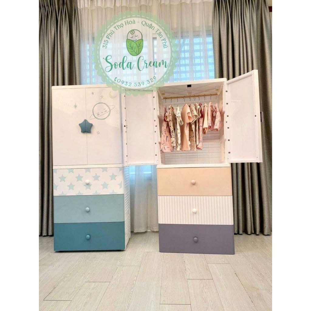 ☘ Rèn luyện cho con cưng thói quen sống gọn gàng tự chủ ngay từ khi còn bé . Ngăn trên có thanh treo quần áo của bé ngoài ra quần áo có thể gấp gọn để bên dưới cũng được Mẹ nha . 3 ngăn kéo dưới tủ đựng đồ dùng , sách vở hoặc đồ chơi.