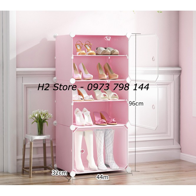 TỦ NHỰA LẮP GHÉP 1 Ô ĐỂ BOOT + 4 Ô ĐỂ GIÀY (chia ô) HỒNG NHẠT CỬA TRẮNG TRONG