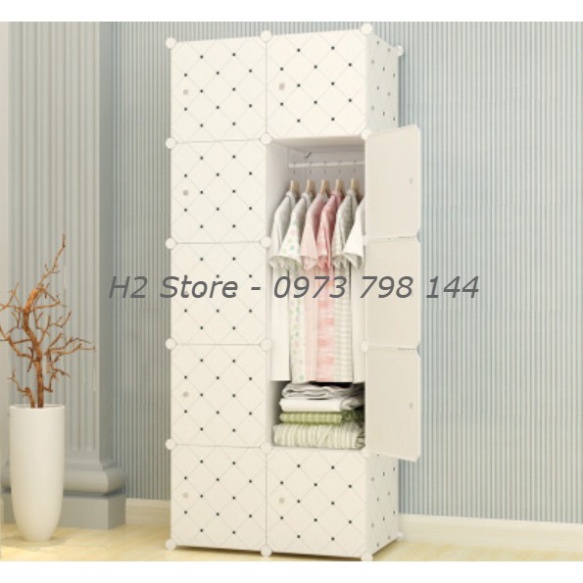 TỦ NHỰA LẮP GHÉP 10 Ô TRẮNG CHẤM BI ĐỂ ĐỒ TREO CHO BÉ ĐA NĂNG THÔNG MINH sâu 47cm