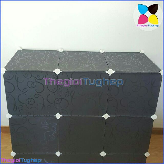 Tủ nhựa lắp ghép 12 ô gân đen sang trọng