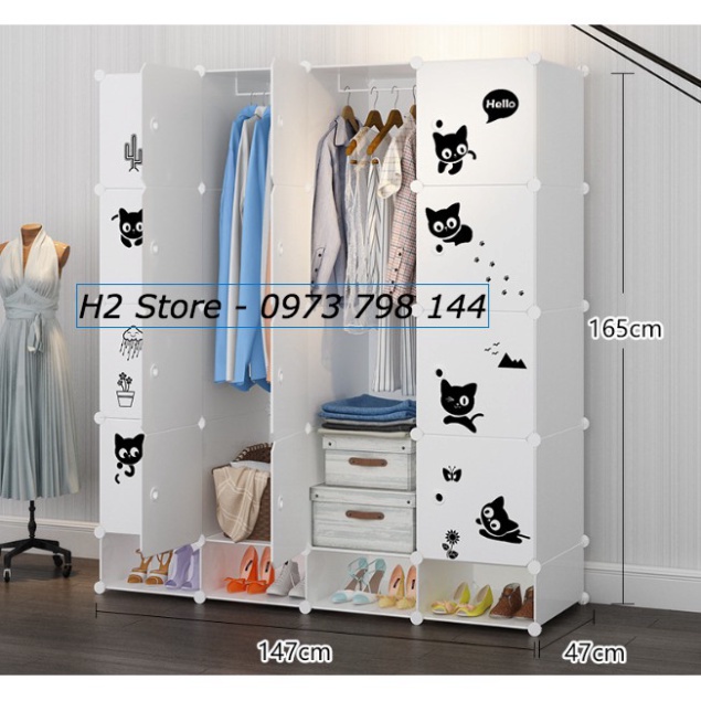 🎯 Kích thước sau khi lắp: cao 1m65, ngang 1m50m, sâu 47cm🎯 Trọng lượng tủ : 16kg