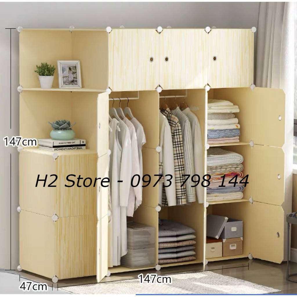 - Có thể móc, xếp quần áo hoặc để sách vở thoải mái, mỗi ô có thể chiu lực từ 12-15kg