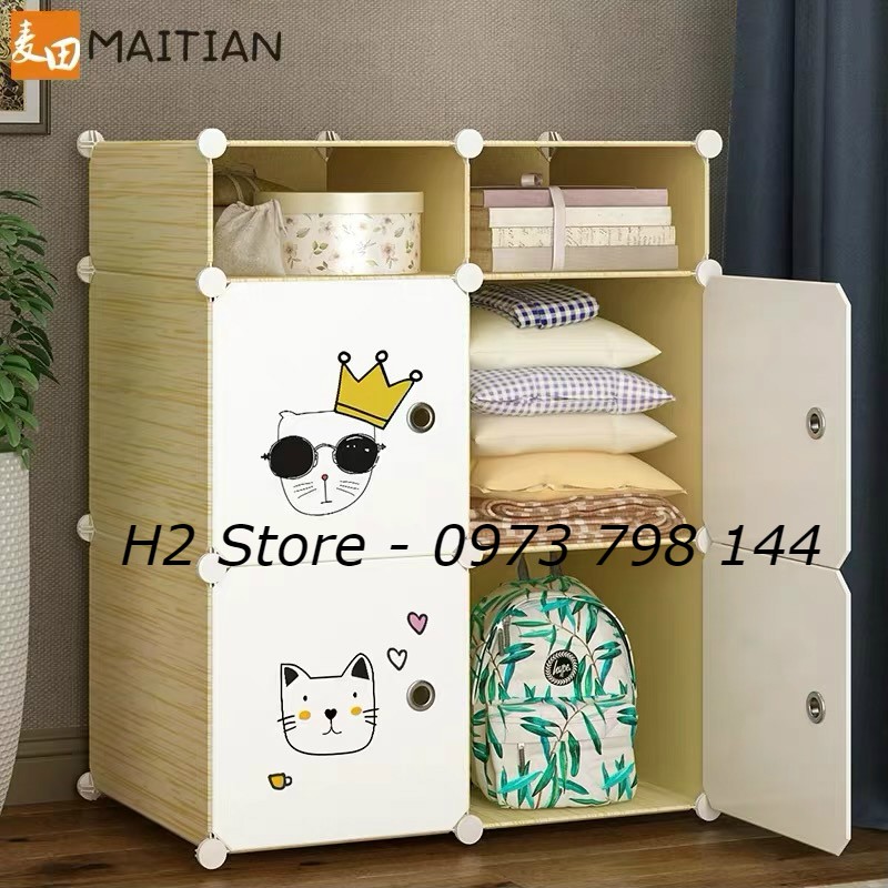 Giới thiệu TỦ NHỰA LẮP GHÉP 4 Ô + 2 Ô NHỎ VÁCH GỖ VÀNG CỬA TRẮNG MÈO VUA sâu 37cm