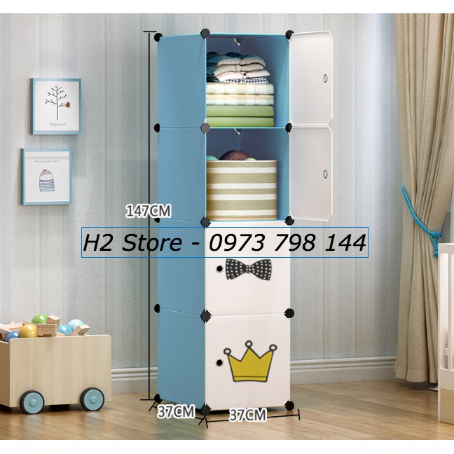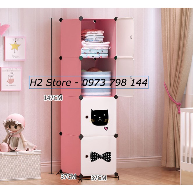 TỦ NHỰA LẮP GHÉP 4 Ô(4X1) CỬA TRẮNG MÈO VUA ĐỂ ĐỒ ĐA NĂNG THÔNG MINH CHO BÉ sâu 47cm