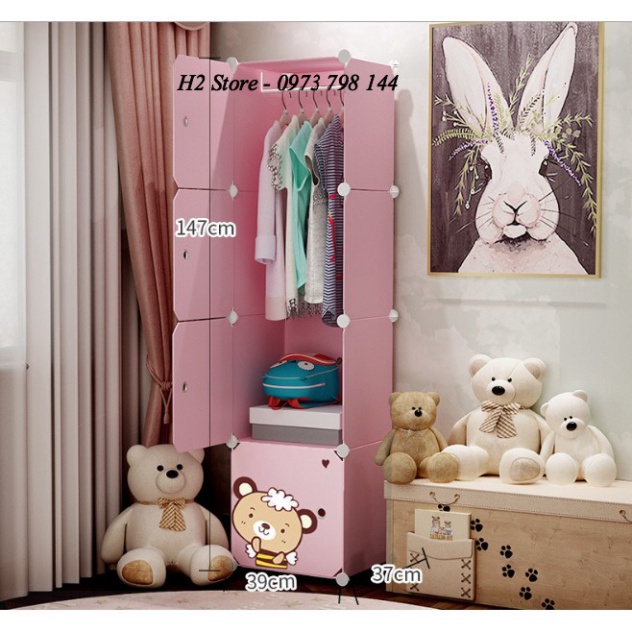 TỦ NHỰA LẮP GHÉP 4 Ô(4X1) HỒNG NHẠT CỬA TRẮNG GẤU ĐỂ ĐỒ ĐA NĂNG THÔNG MINH CHO BÉ sâu 47cm