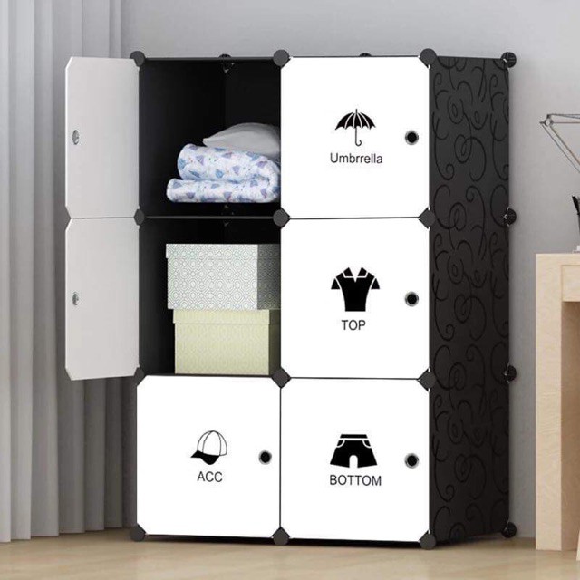 Giới thiệu Tủ nhựa lắp ghép 6 ô -ĐEN CỬA TRẮNG DEACL MÈO,1 TREO