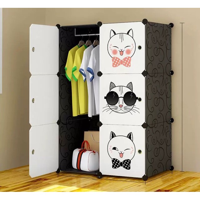 Nhà cửa & Đời sống > Nội thất > Tủ bếp || Tủ nhựa lắp ghép 6 ô Hình mèo đeo kính đựng quần áo đẹpCòn hàng
