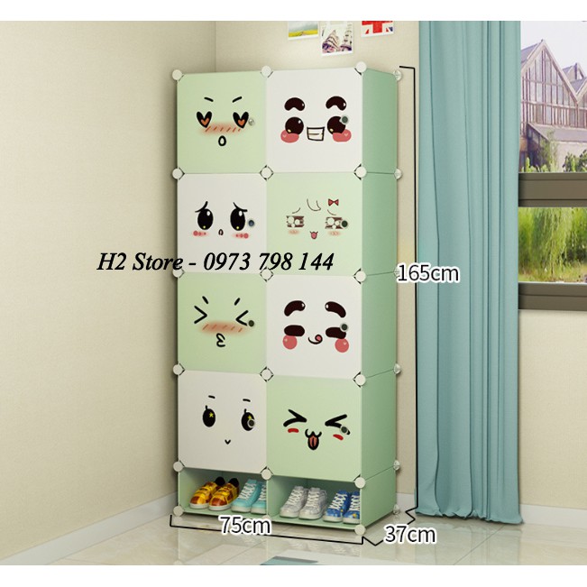 TỦ NHỰA LẮP GHÉP 8 Ô + 2 GIÀY (2TT) CỬA MẶT CƯỜI ĐỂ ĐỒ CHO BÉ ĐA NĂNG THÔNG MINH sâu 47cm