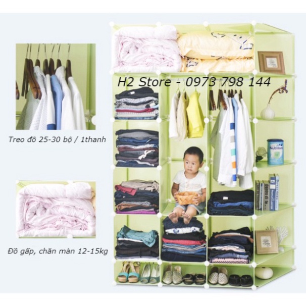 - Có thể móc, xếp quần áo hoặc để sách vở thoải mái, mỗi ô có thể chiu lực từ 12-15kg