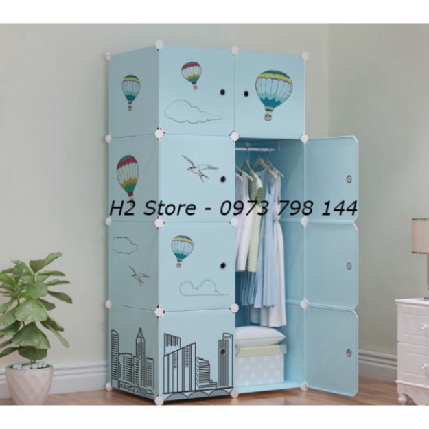 TỦ NHỰA LẮP GHÉP 8 Ô CỬA KHINH KHÍ CẦU TREO ĐỒ ĐA NĂNG THÔNG MINH sâu 47cm