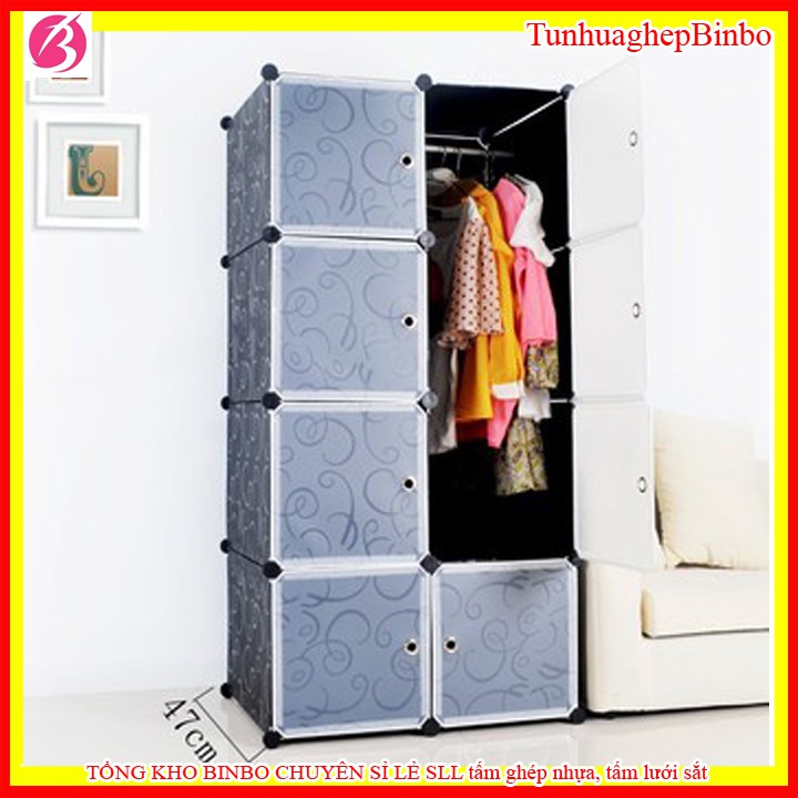 Tủ nhựa lắp ghép 8 ô và 2 thanh treo bỏ 1 vách size 47