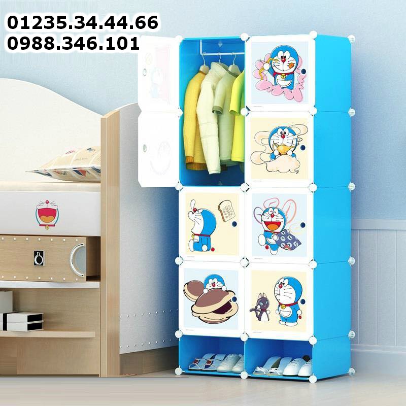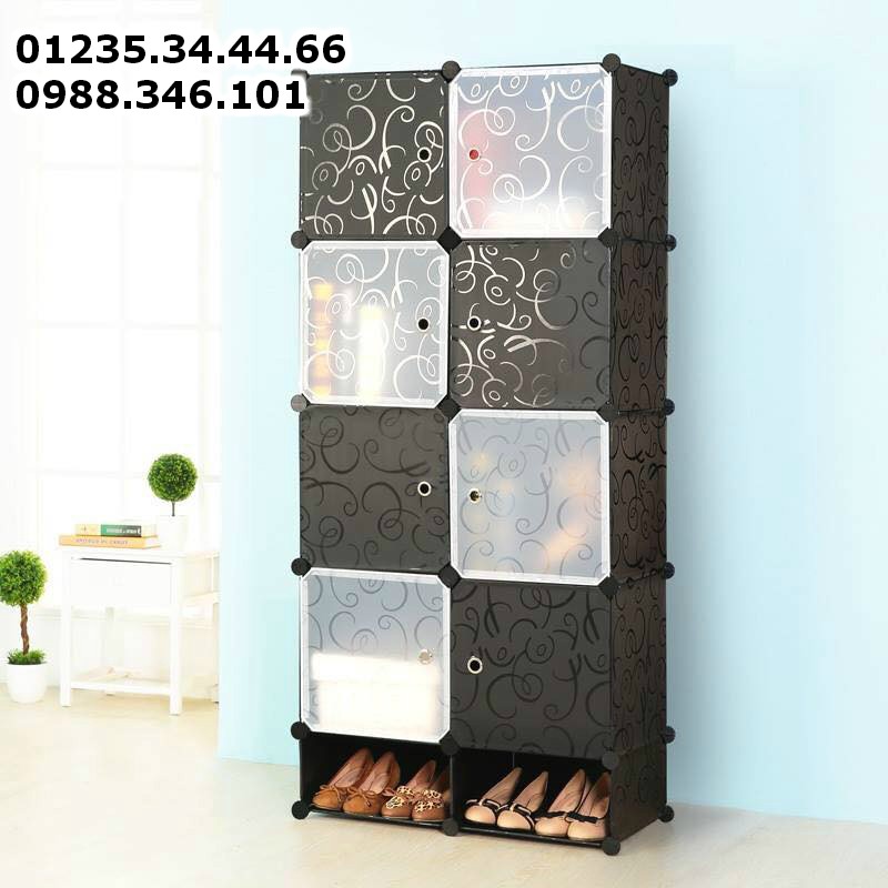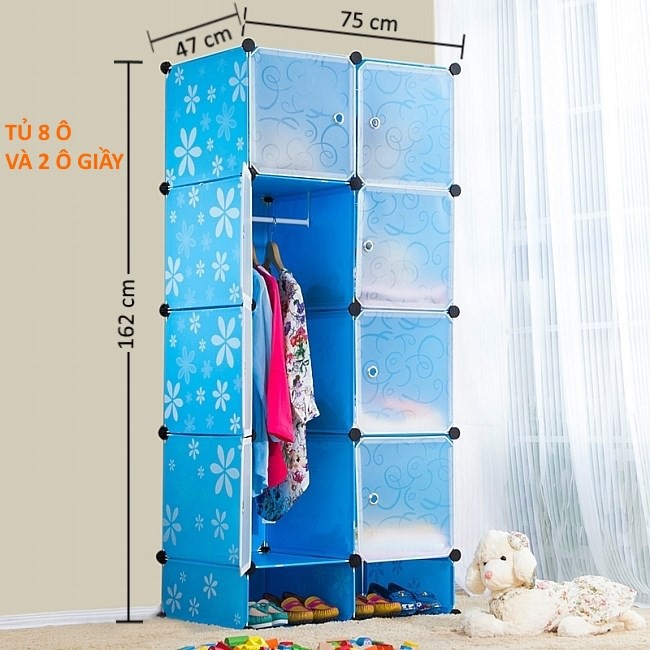 Tủ nhựa lắp ghép 8 ô xanh hoa kèm 2 ô giày