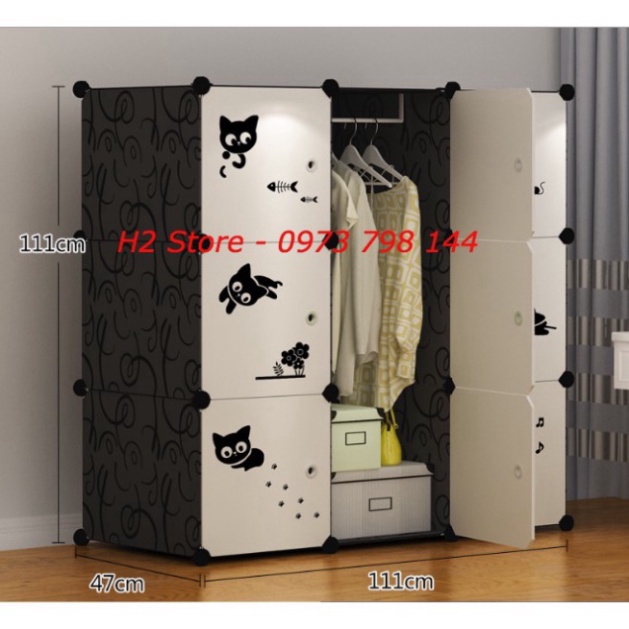 Nhà cửa & Đời sống > Nội thất > Tủ bếp || TỦ NHỰA LẮP GHÉP 9 Ô CỬA TRẮNG ĐỤC MÈO ĐEN ĐỂ ĐỒ CHO BÉ ĐA NĂNG THÔNG MINH sâu 47cmCòn hàng