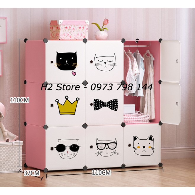 TỦ NHỰA LẮP GHÉP 9 Ô HỒNG NHẠT CỬA TRẮNG ĐỤC MÈO VUA ĐỂ ĐỒ CHO BÉ ĐA NĂNG THÔNG MINH sâu 47cm