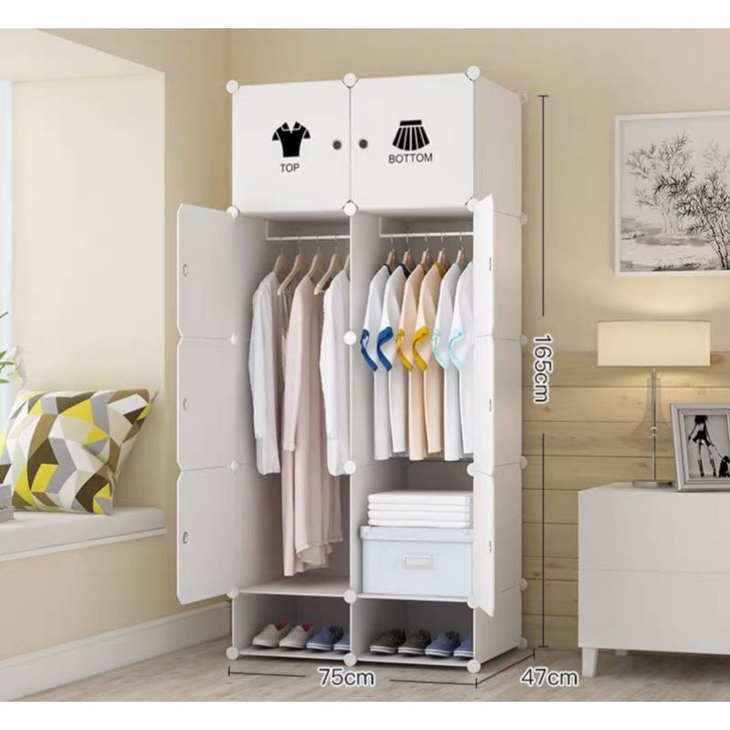 Tủ nhựa lắp ghép đa năng để đồ 10 ô (2 ô giày)(chọn hình theo phân loại)Kích thước tủ: rộng 75, cao 165, sâu 47