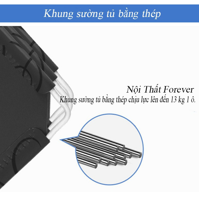 Tủ được làm từ nhựa PP mỏng, dẻo dai, khung bọc thép chắc chắn