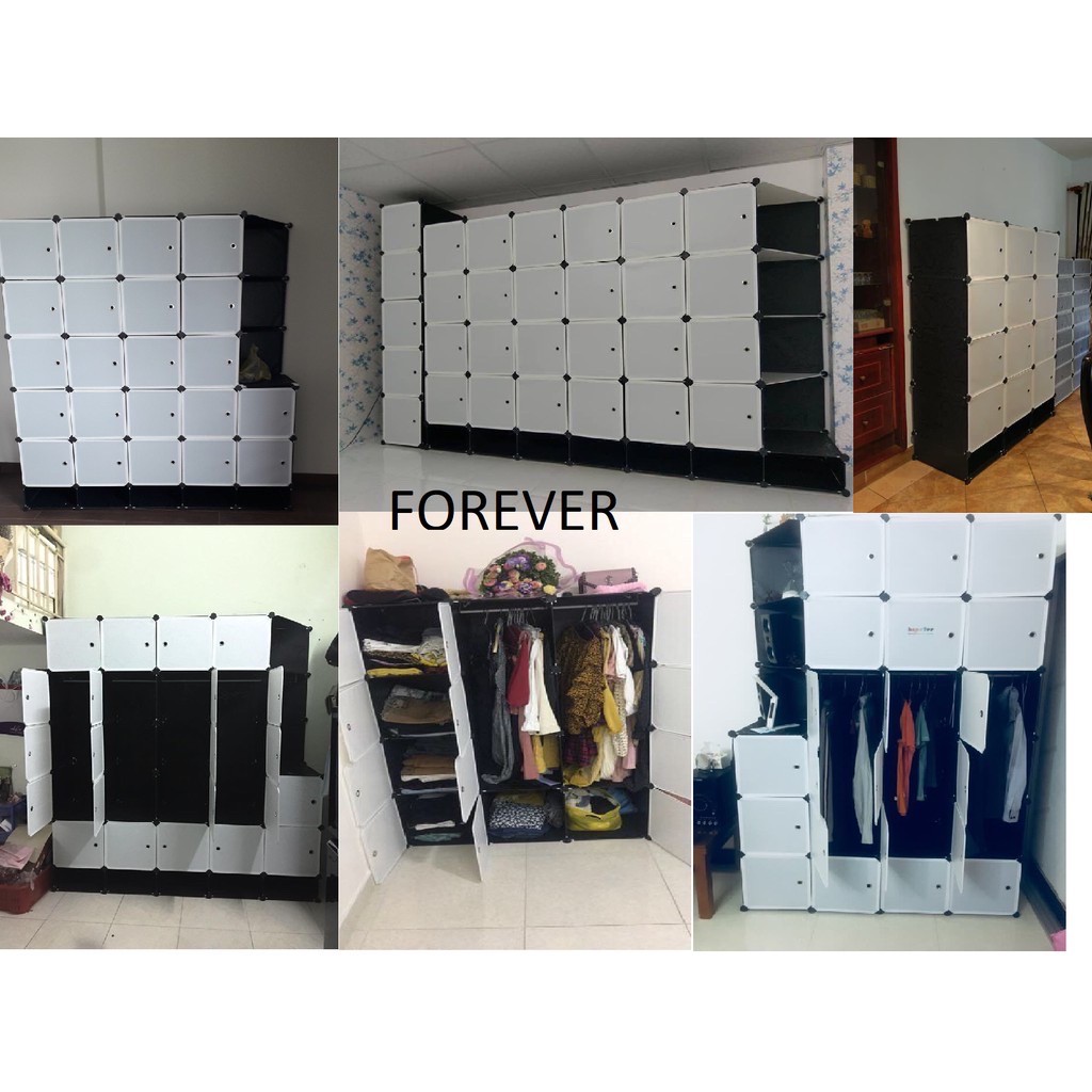 Tủ nhựa lắp ghép đa năng 15 ô size to sâu 47,màu đen, cửa trắng,2 treo, 3 xéo - Bảo hành 1 năm