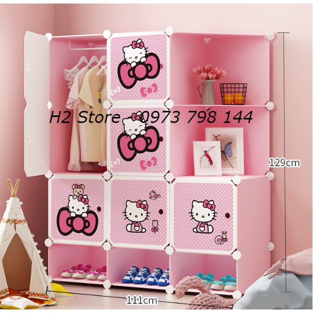 Nhà cửa & Đời sống > Nội thất > Tủ bếp || TỦ NHỰA LẮP GHÉP ĐA NĂNG ĐỂ ĐỒ CHO BÉ 9 Ô VÀ 3 Ô GIÀY (GỒM 2 KỆ GÓC) CỬA KITTY CHẤM BI DỄ THƯƠNG sâu 47cm, vách hồngCòn hàng