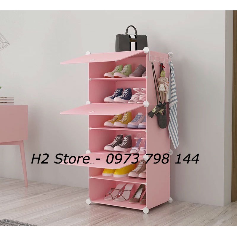 TỦ NHỰA LẮP GHÉP ĐỂ ĐƯỢC 12 ĐÔI GIÀY, DÉP GỒM 6 Ô (chia ô) VÁCH HỒNG