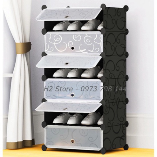 Giới thiệu TỦ NHỰA LẮP GHÉP ĐỂ GIÀY ĐA NĂNG THÔNG MINH 6 Ô VÁCH ĐEN, CỬA TRẮNG TRONG