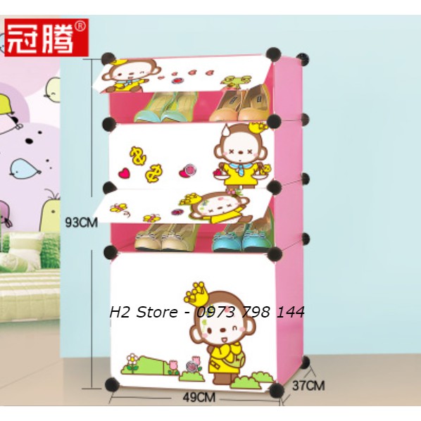 Giới thiệu TỦ NHỰA LẮP GHÉP ĐỂ GIÀY DÉP THÔNG MINH 1 Ô TO + 3 Ô NHỎ MÀU HỒNG CỬA KHỈ DỄ THƯƠNG