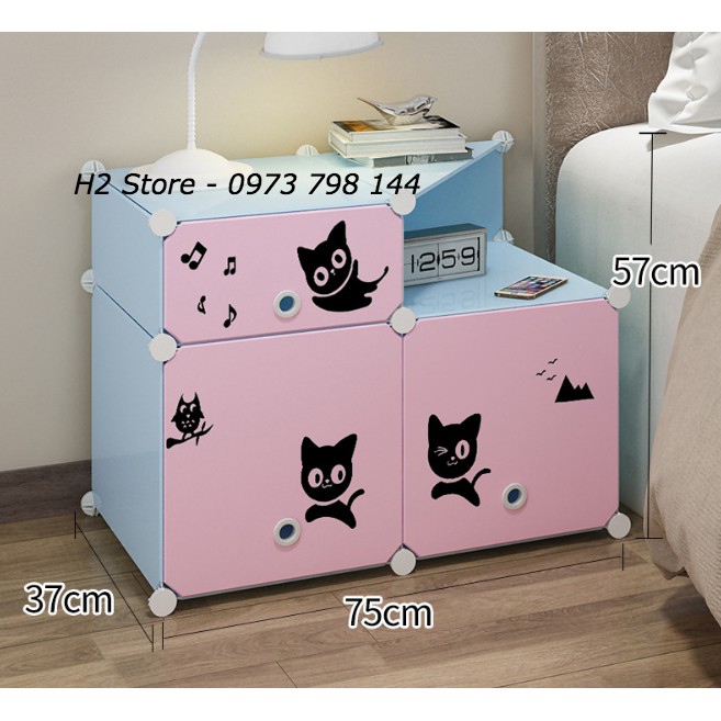 Nhà cửa & Đời sống > Nội thất > Tủ bếp || TỦ NHỰA LẮP GHÉP MINI ĐẦU GIƯỜNG 2 Ô TO + 1 Ô NHỎ + 1 KỆ XANH NHẠT CỬA HỒNG MÈO ĐEN ĐỂ ĐỒCòn hàng