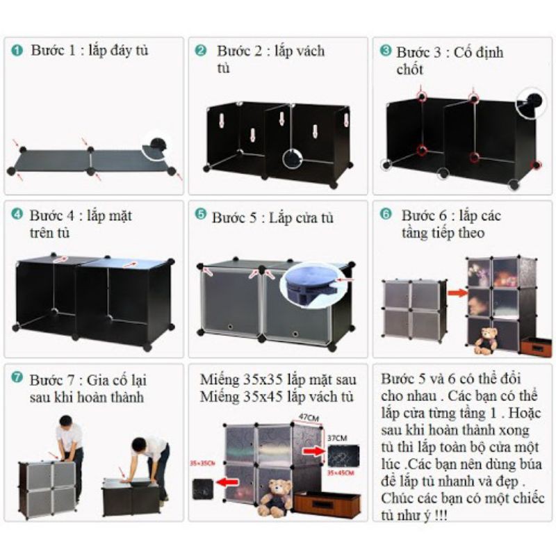 -Tủ nhựa là tủ nhựa lắp ghép. Tủ cấu tạo từ các tấm ghép nhựa dẻo coa khung thép bọc sơn tĩnh điện chịu lực. Mỗi ô gồm 4-5 tấm lắp thành 1 ô và nhiều tấm ghép dựng lên thành 1 tủ. Rất chắc chắn ah. Mỗi ô lắp lên chứa tối đa 10kg đồ nha b
