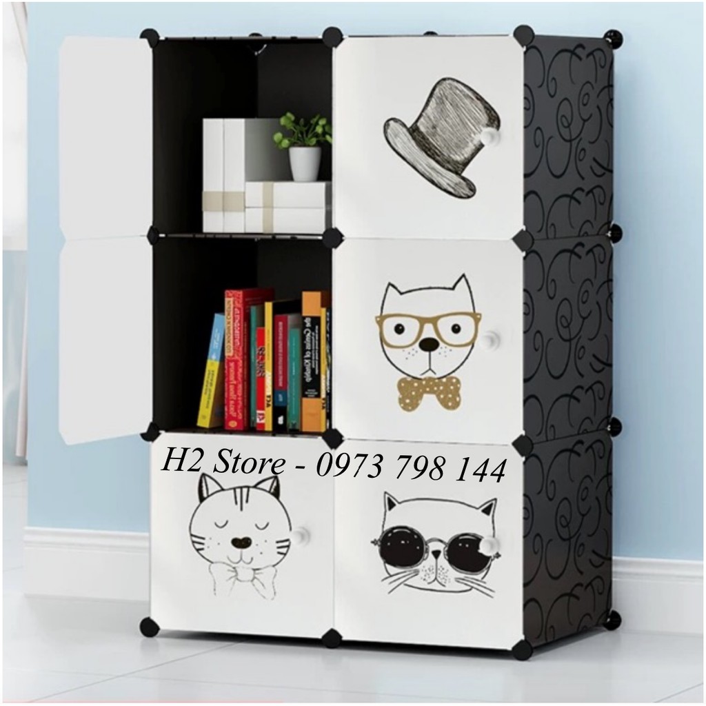 TỦ NHỰA LẮP GHÉP THÔNG MINH GIÁ RẺ 6 Ô CỬA MÈO NƠ DỄ THƯƠNG ĐA NĂNG sâu 47cm