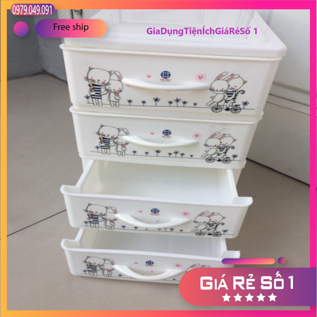 Tủ nhựa mini 4 ngăn hoa bé Việt Nhật (tủ nhỏ không đựng quần áo quý kích lưu ý để tránh đổi trả)