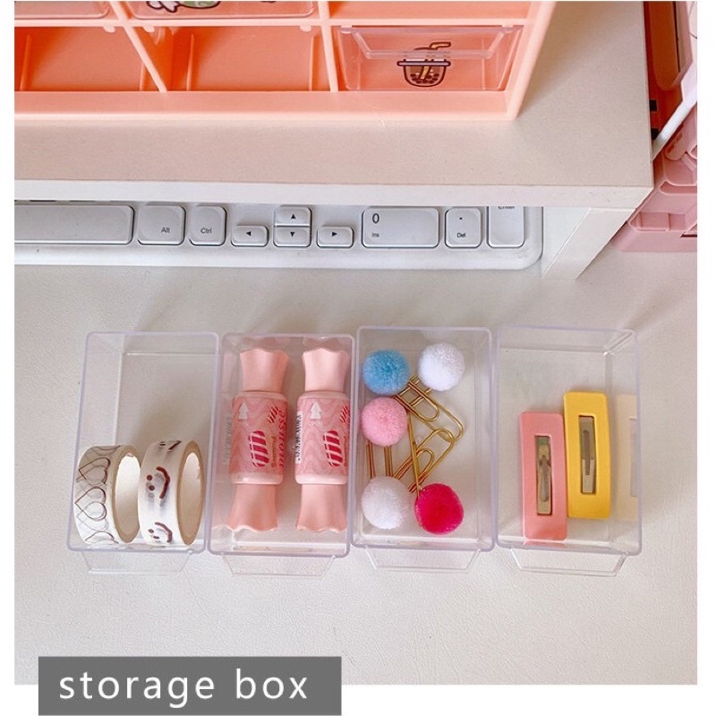 Tặng kèm sticker trang tríHộp nhựa gồm 9 ngăn kéo nhỏ dùng đựng trang sức/ cột tóc/ kẹp tóc/ son/ v..v.. cực xinh xắn và tiện lợi đây ạ