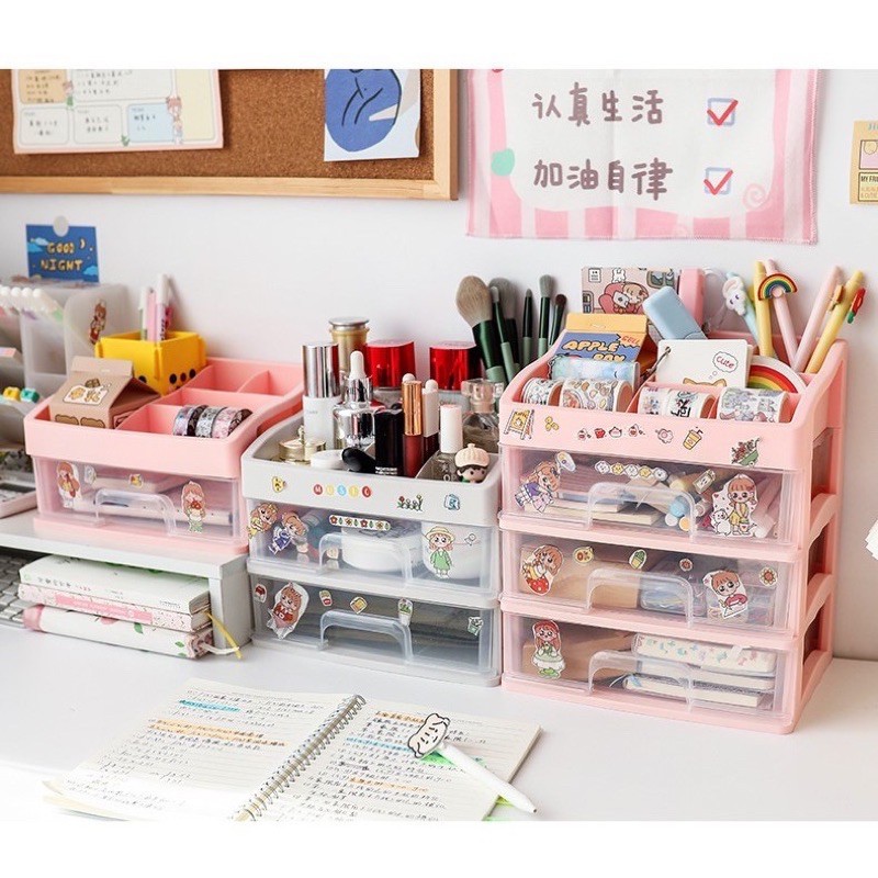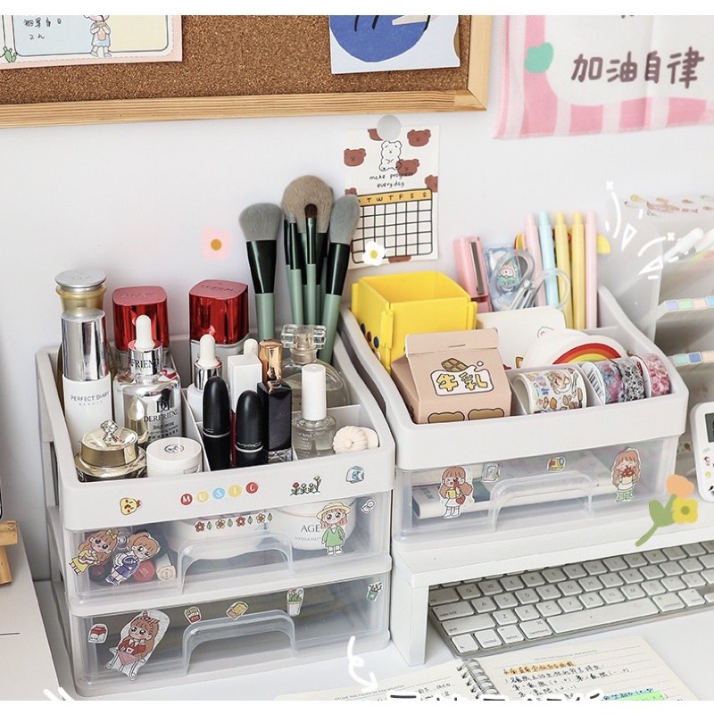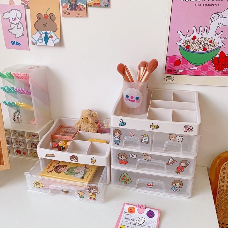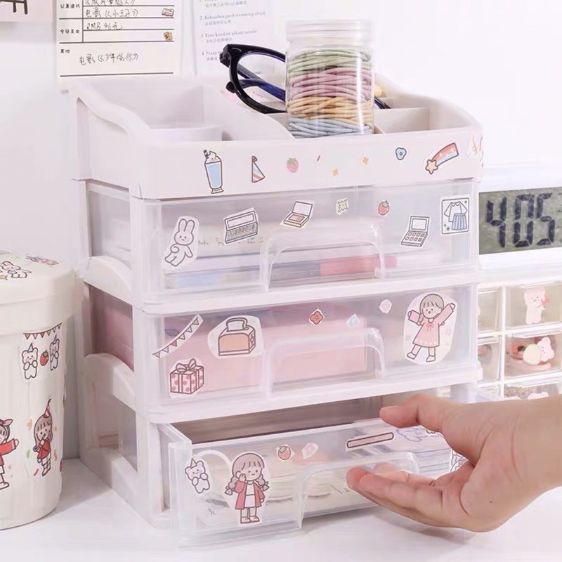 Tủ Nhựa Mini Để Bàn Đựng Đồ Đa Năng Nhiều Ngăn Kéo Kèm Sticker