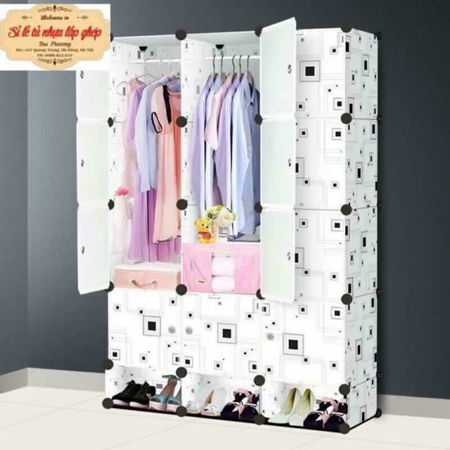 Giới thiệu TỦ NHỰA QUẦN ÁO LẮP GHÉP 12+3 Ô GIÀY TRẮNG Ô VUÔNG Size sâu 47cm. Tặng kèm 1 treo đồ.