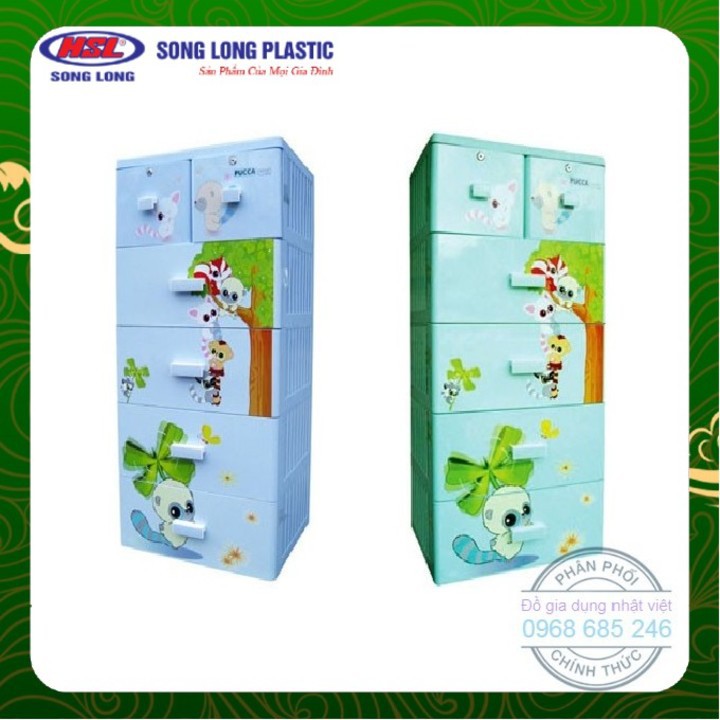 Tủ nhựa Song Long 5 tầng 6 ngăn có khóa hàng đẹp